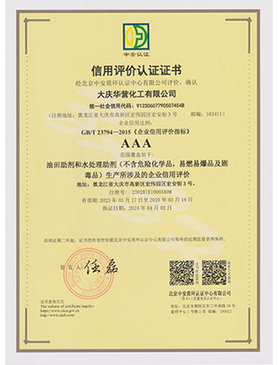 大慶華營化工有限公司成立于2006年7月10日,注冊(cè)資金3300萬元,公司類型為有限責(zé)任公司。位于大慶高新技術(shù)產(chǎn)業(yè)開發(fā)區(qū)宏偉園區(qū),是一家集油田助劑產(chǎn)品的研發(fā)、生產(chǎn)、銷售和技術(shù)服務(wù)為一體的現(xiàn)代化高新技術(shù)企業(yè)。公司注重科技創(chuàng)新,公司擁有18項(xiàng)自主知識(shí)產(chǎn)權(quán)。企業(yè)承擔(dān)過國家火炬計(jì)劃重點(diǎn)項(xiàng)目、國家科技型中小企業(yè)創(chuàng)新項(xiàng)目等,2011年被科技部火炬高新技術(shù)產(chǎn)業(yè)開發(fā)中心評(píng)為國家火炬計(jì)劃重點(diǎn)高新技術(shù)企業(yè)。公司十余種產(chǎn)品獲得中國石油天然氣集團(tuán)公司產(chǎn)品質(zhì)量認(rèn)可證書,其中粘穩(wěn)型驅(qū)油劑獲國家火炬計(jì)劃重點(diǎn)項(xiàng)目證書。公司憑借多年對(duì)大慶油田及周邊油田地質(zhì)情況的研究,可針對(duì)各油田地層特點(diǎn)調(diào)整產(chǎn)品的配方,更好地發(fā)揮各類油田助劑的性能。
